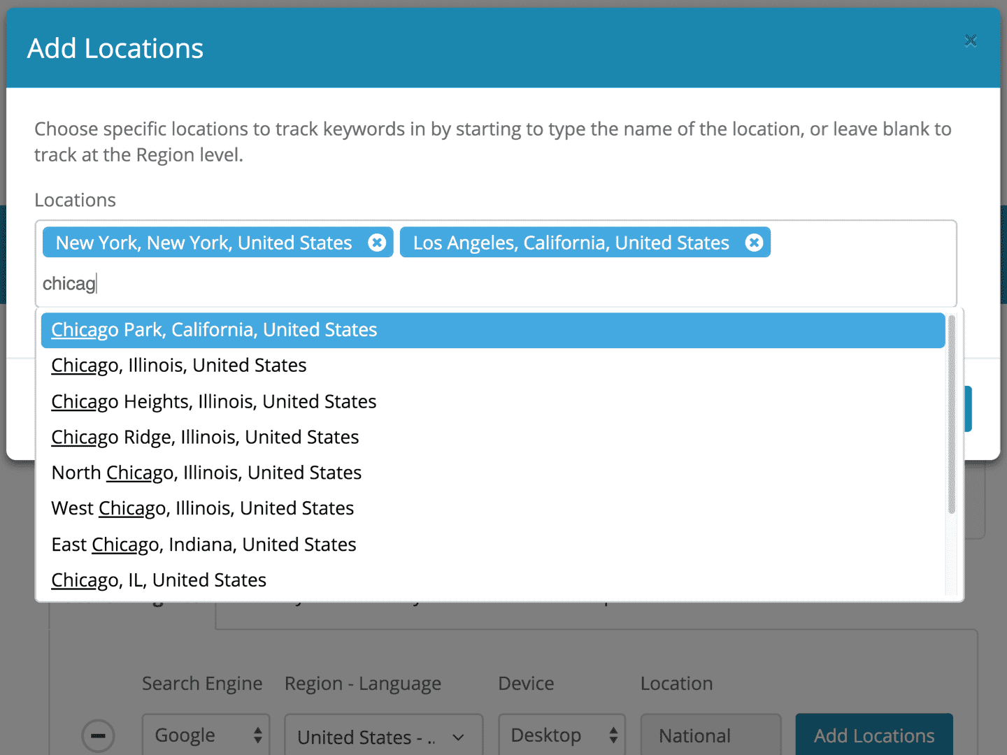 Track keyword performance in over 100,000 locations at the city, neighborhood, or postal code level
